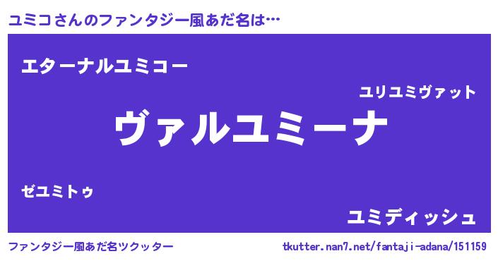 | 男性向けラノベタイトル風あだ名 | 『魔弾の王とユミコ』『ユミコスレイヤー』 |
