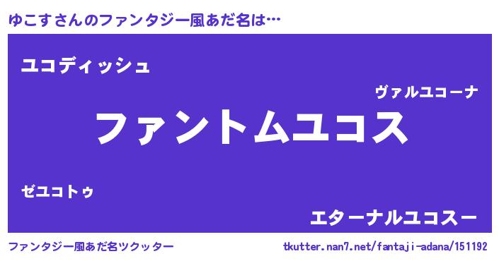| ポケモン風あだ名 | 『ヒユコス』『ゼニユコ』『ユーコイ』 |