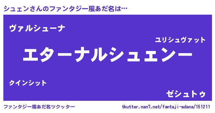 | 意味不明あだ名 | 『シュェンフォーエバー』『自称シュェン』 |