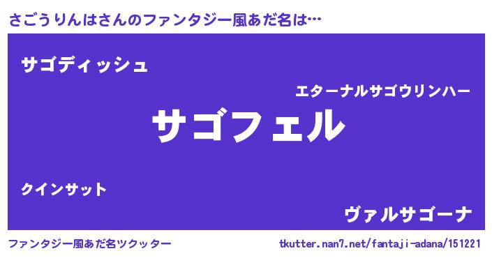 | 男性向けラノベタイトル風あだ名 | 『さごうりんはの憂鬱』 |
