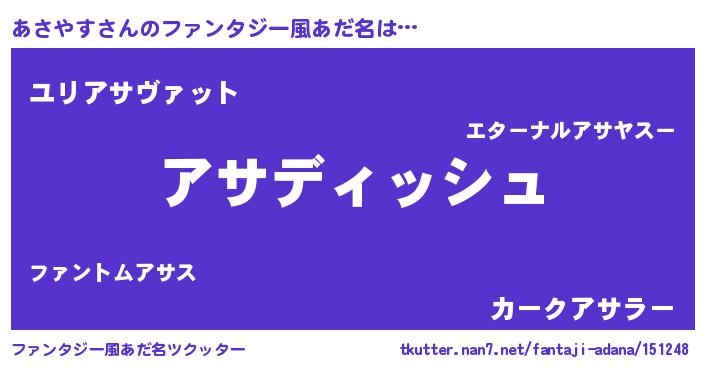| 胡散臭い通販商品みたいなあだ名 | 『絶対に幸福をもたらす健康食品…その名も「あさやす」』 |