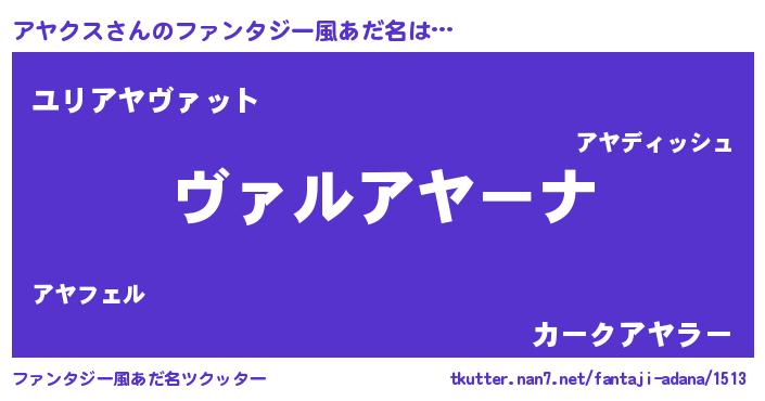| 男性向けラノベタイトル風あだ名 | 『魔弾の王とアヤクス』 |