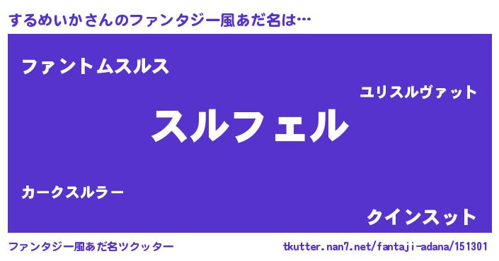 | 男性向けラノベタイトル風あだ名 | 『するめいかの憂鬱』 |