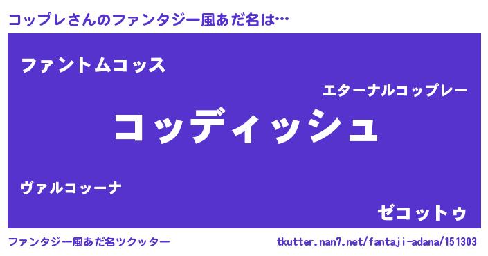 | 胡散臭い通販商品みたいなあだ名 | 『来世でも幸せになれる健康食品…その名も「コップレ」』 |
