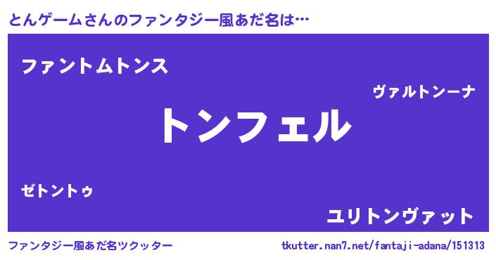 | 男性向けラノベタイトル風あだ名 | 『とんゲームの憂鬱』 |