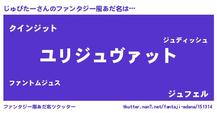 | ヒーロー風カッコイイあだ名 | 『天空の使者じゅぴたー』『天弓騎士ジュ』 |