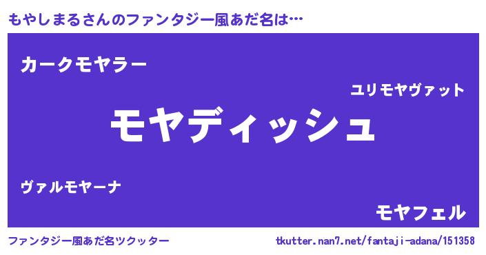 | ヘコむあだ名 | 『もやしまる(笑)』『もやもー』 |