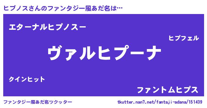 | 意味不明あだ名 | 『住所不定無職ヒプノス(10歳)』 |
