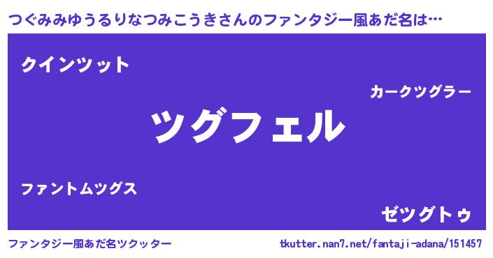 | 女子向けラノベタイトル風あだ名 | 『つぐみみゆうるりなつみこうき姫と円卓の騎士』 |