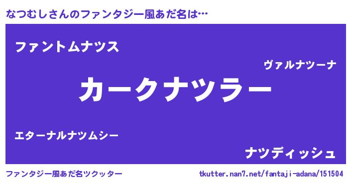 | ヒーロー風カッコイイあだ名 | 『銀牙騎士ナツ』『ネオナツムシ』 |
