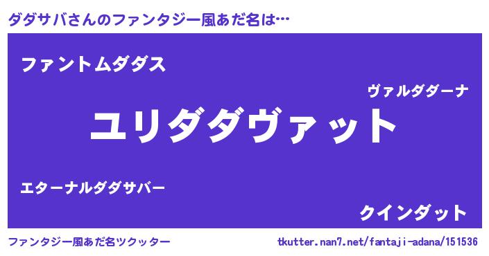 | 男性向けラノベタイトル風あだ名 | 『ダダサバに滅ぼされるだけの簡単なお仕事です』 |