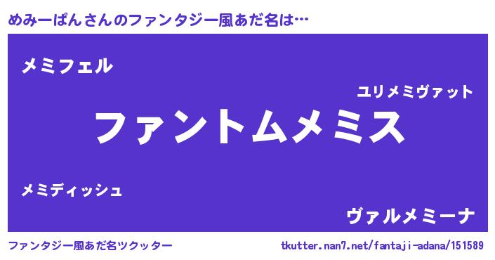 | 自動車の名前っぽいあだ名 | 『メルトミパン』『メミティマ』 |