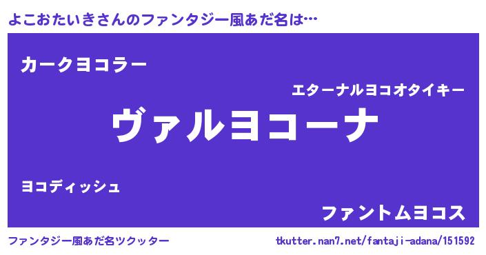 よこおたいきさんのファンタジー風あだ名をツクッター!