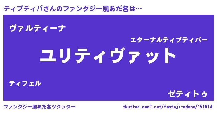 | 男性向けラノベタイトル風あだ名 | 『転生したらティプティバだった件』 |