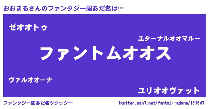 | 男性向けラノベタイトル風あだ名 | 『ダンジョンにおおまるを求めるのは間違っているだろうか』 |