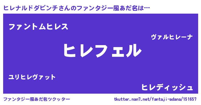 | 男性向けラノベタイトル風あだ名 | 『ヒレナルドダビンチの憂鬱』 |