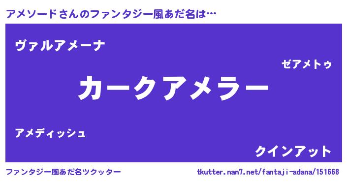 | 意味不明あだ名 | 『住所不定無職アメソード(86歳)』 |