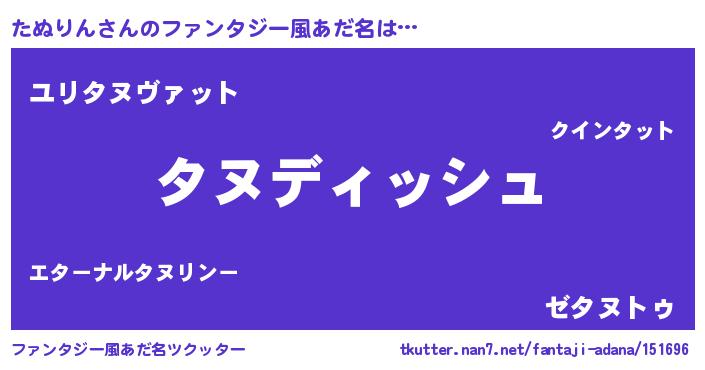 | 男性向けラノベタイトル風あだ名 | 『たぬりんという概念が存在しない退屈な世界 』 |
