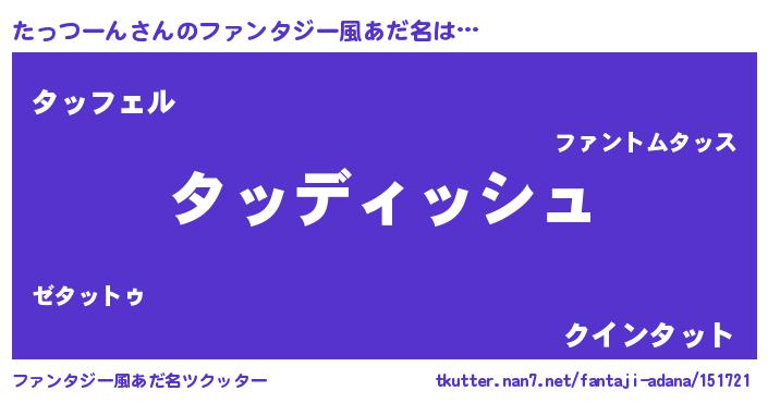 | 男性向けラノベタイトル風あだ名 | 『たっつーんという概念が存在しない退屈な世界 』 |