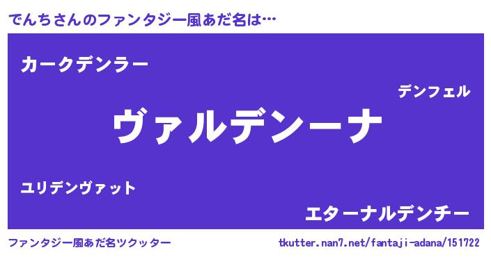 | 男性向けラノベタイトル風あだ名 | 『魔弾の王とでんち』 |