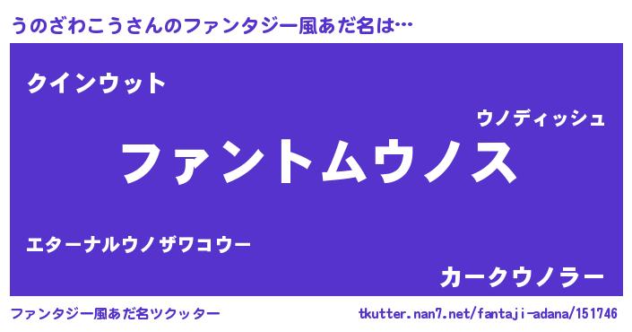 | 男性向けラノベタイトル風あだ名 | 『ダンジョンにうのざわこうを求めるのは間違っているだろうか』 |