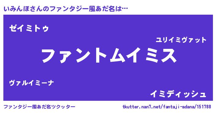 | ヘコむあだ名 | 『いみぷりん』『いみんほ(小並感)』 |