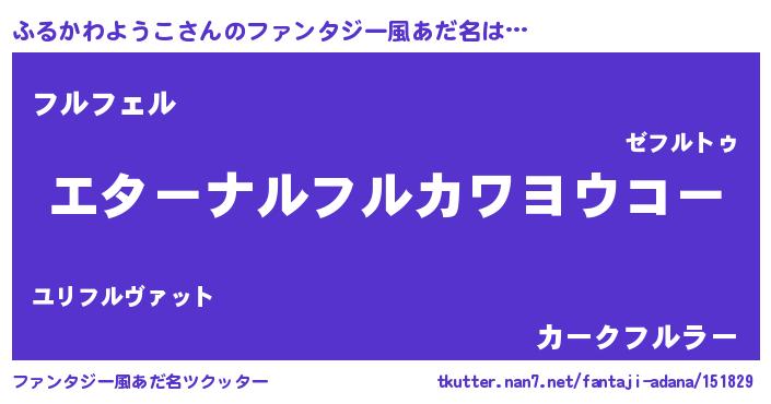 | 伝説のあだ名 | 『最古の陰陽師ふるかわようこ』 |