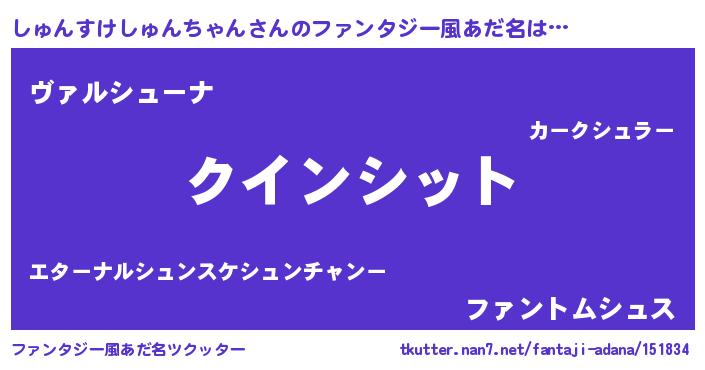 | 男性向けラノベタイトル風あだ名 | 『おまえをオタクにしてやるから、俺をしゅんすけしゅんちゃんにしてくれ! 』 |