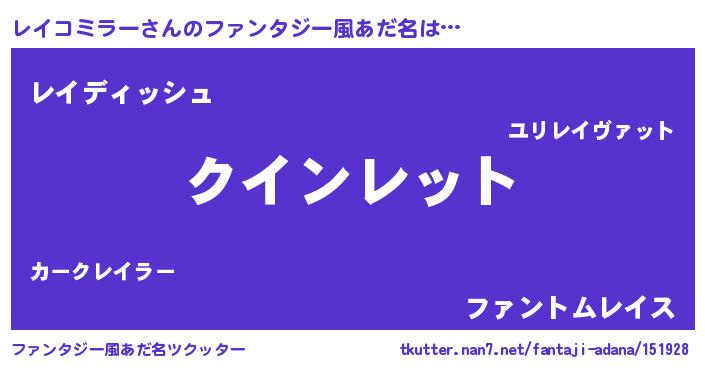 | ヘコむあだ名 | 『レイコミラー(笑)』『レイぷりん』 |