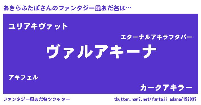 | 男性向けラノベタイトル風あだ名 | 『この素晴らしい世界にあきらふたばを!』 |