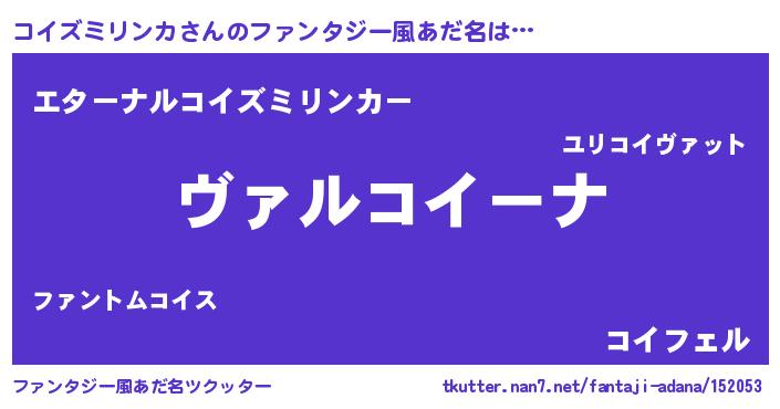 | 男性向けラノベタイトル風あだ名 | 『この素晴らしい世界にコイズミリンカを!』 |