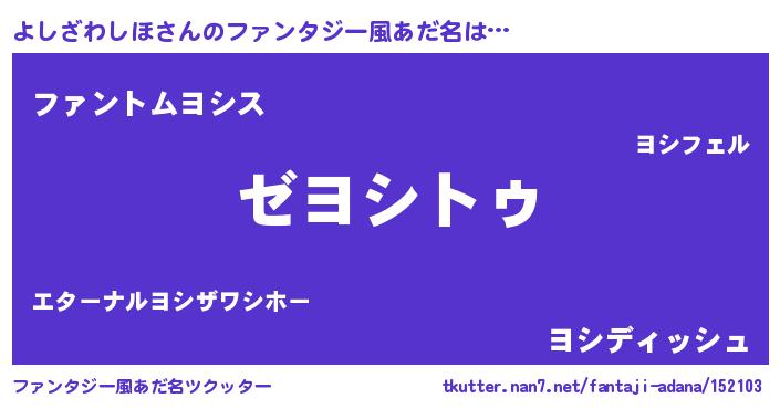 | ポケモン風あだ名 | 『ヨシセウス』『ヨシゴンZ』 |