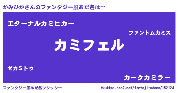| ヒーロー風カッコイイあだ名 | 『スーパーカミヒカ』『魔戒騎士カミ』 |