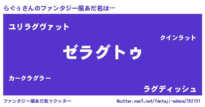 | ヘコむあだ名 | 『らぐぅ(小並感)』『らぐっぺ』 |