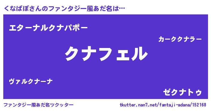 | 意味不明あだ名 | 『ペロリンくなぱぽ』『自称くなぱぽ』 |