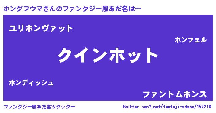 | 男性向けラノベタイトル風あだ名 | 『ノーゲーム・ノーホンダフウマ』 |
