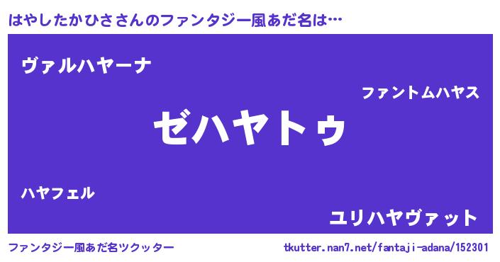 | 意味不明あだ名 | 『自称はやしたかひさ』 |
