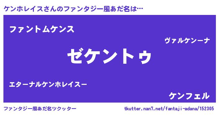 | 女子向けラノベタイトル風あだ名 | 『ケンホレイスなんてお断りですっ。』 |