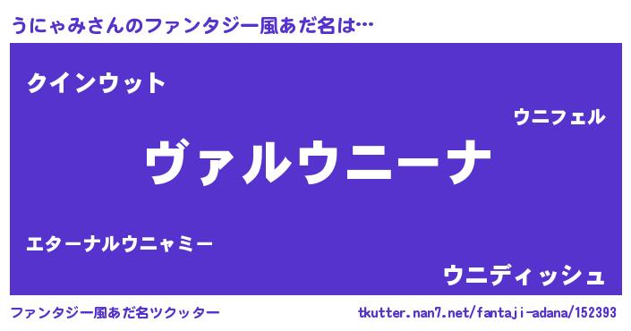 | 男性向けラノベタイトル風あだ名 | 『この素晴らしい世界にうにゃみを!』 |
