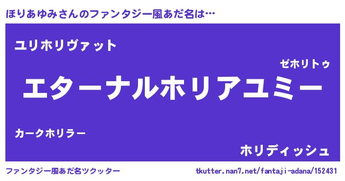 | 肩書あだ名 | 『ほりあゆみ総理大臣』『ほりあゆみ少尉』 |