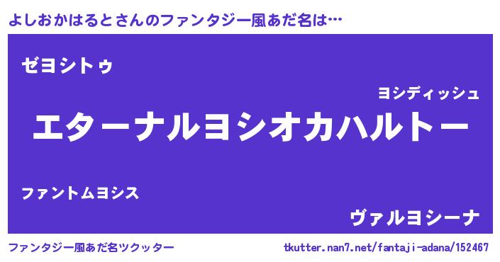 | 女子向けラノベタイトル風あだ名 | 『よしおかはるとの雑貨屋さん』 |