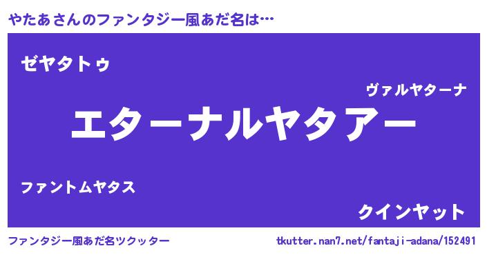 | 女子向けラノベタイトル風あだ名 | 『やたあの雑貨屋さん』『闇のやたあ』 |