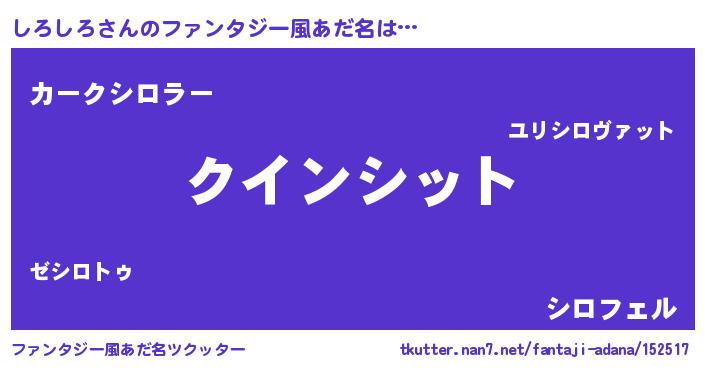 | ヘコむあだ名 | 『しろにー』『酢こんぶ』『しろを』 |