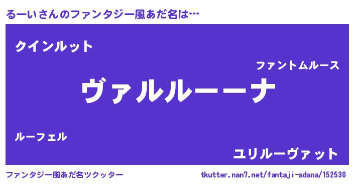| 男性向けラノベタイトル風あだ名 | 『この素晴らしい世界にるーいを!』 |