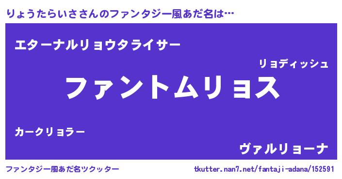 | 意味不明あだ名 | 『とにかく怪しいりょうたらいさ』 |