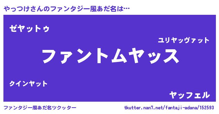 | ヒーロー風カッコイイあだ名 | 『幻影騎士ヤッ』『超時空戦士ヤッツケ』 |