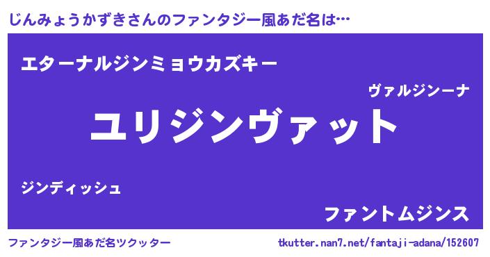 | 男性向けラノベタイトル風あだ名 | 『ジンミョウカズキスレイヤー』 |