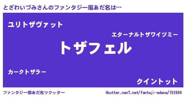| ヒーロー風カッコイイあだ名 | 『スーパートザワイヅミ』『幻影騎士トザ』 |