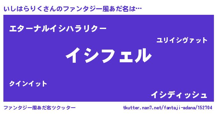 | 胡散臭い通販商品みたいなあだ名 | 『億万長者になれるブレスレット…その名も「いしはらりく」』 |