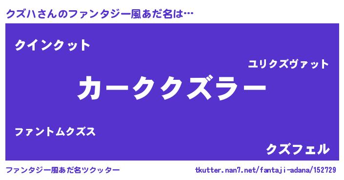| 欧米人風あだ名 | 『クズハ・ステッグマイヤー』 |